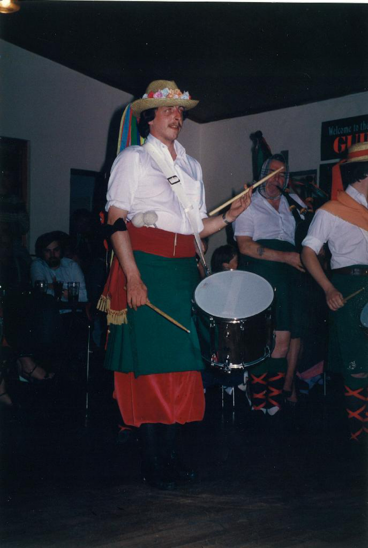 "From all appearances, the night events of the Festival proved also very successful. I recall walking along the beach from C.Y.M.S. Hall after the Artane Boys Band Concert on the Wednesday night, only to find that a number of the Pubs had closed their doors because they had full houses. Later on, I found myself upstairs in the Commodore Hotel, in what at first sight appeared to be a very rough and ready bar, but within minutes of arriving I had struck up several conversations with members of the visiting groups. The roll of drums, however, abruptly put an end to the conversations as the Manchester Fianna Phádraig Pipe Band marched into the hall. Now normally I would take exception to the proximity of a pipe band in the open air and I certainly did not want it in an enclosed space. That was until I became fully aware that it was probably, no definitely, the finest pipe playing it had ever been my pleasure to hear.