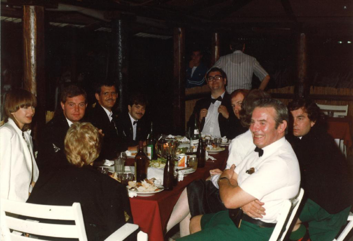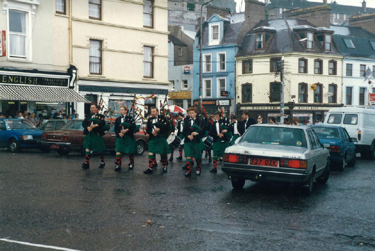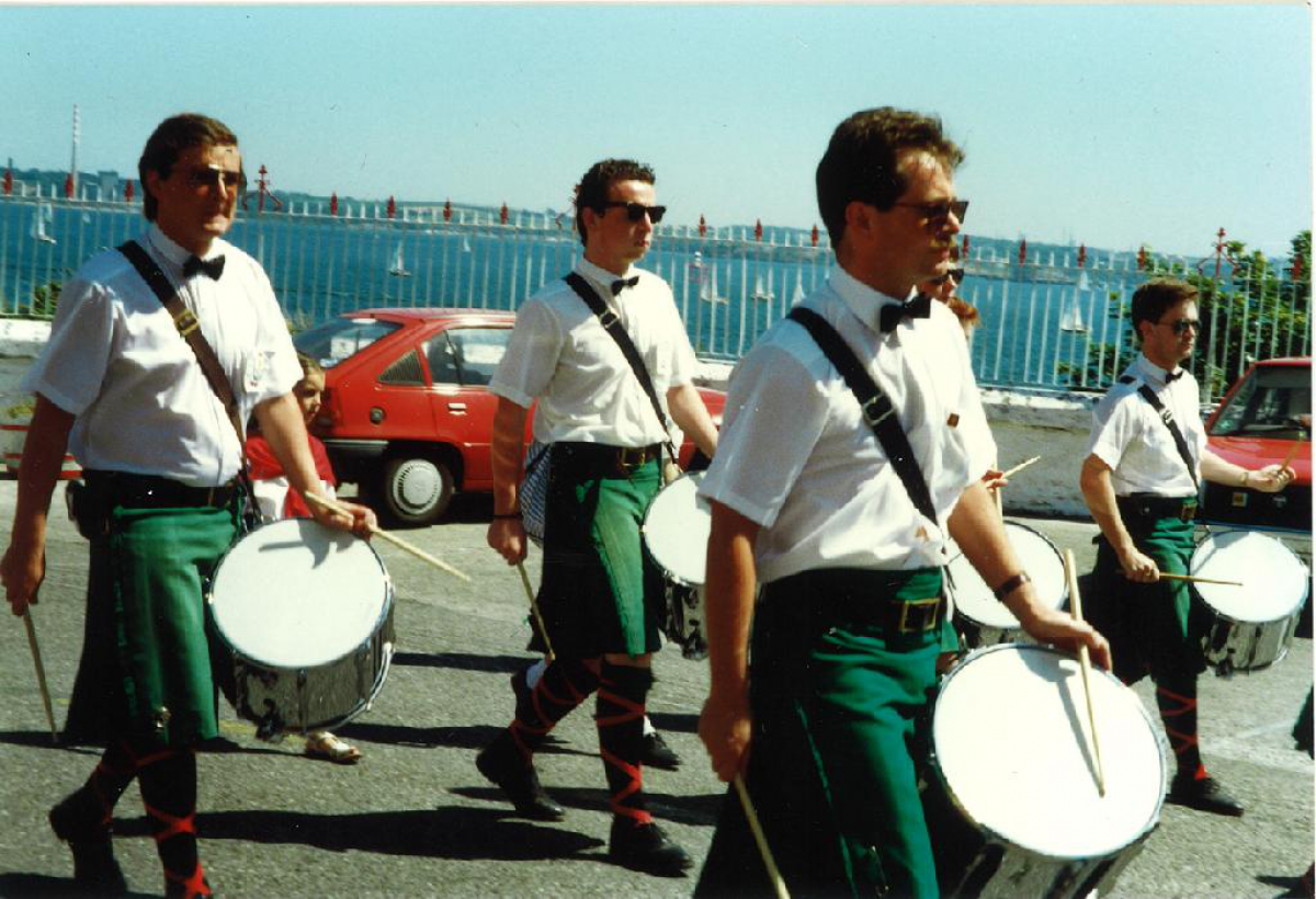 Our last visit to Cobh was in 1991, just a few months after Terry Dowling's untimely death. On our first evening in the town, the festival organisers asked us to attend the official opening of the festival club. We were all moved to tears when we learnt that they had decided to honour our deceased friend and pipe major by renaming the festival club "The Terry Dowling Festival Club". A fitting tribute to a true friend of the Cobh festival.