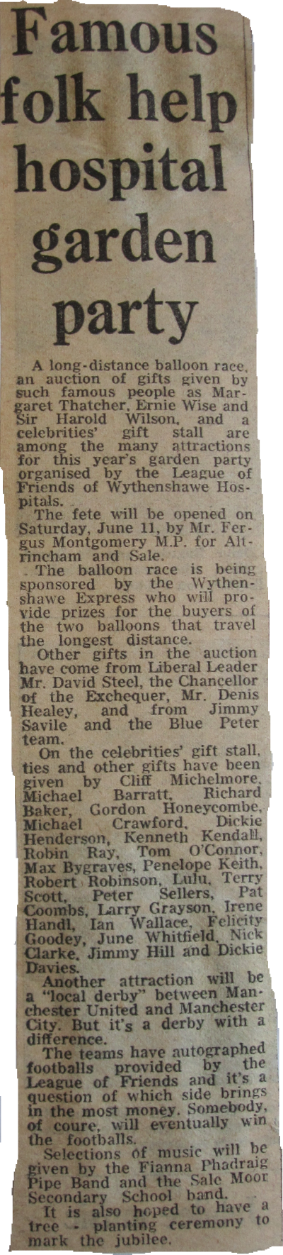 | Famous folk help hospital garden party |