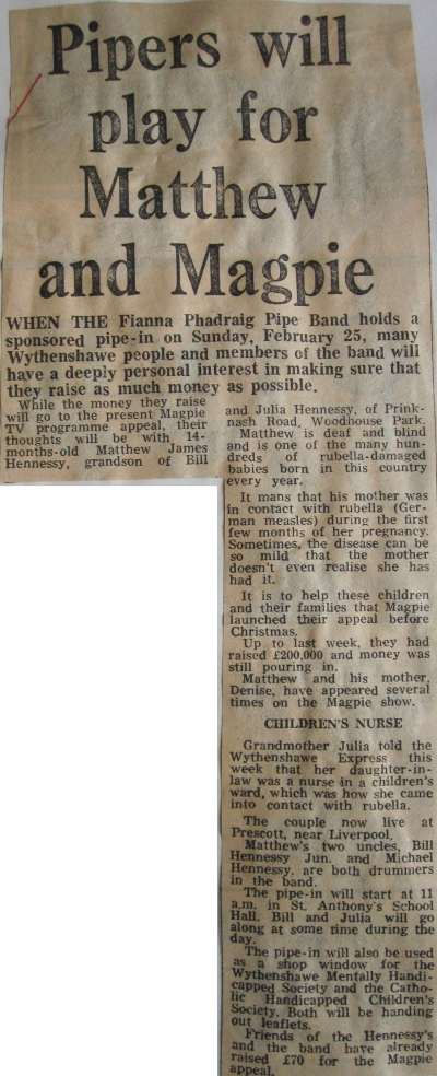 | Bandsmen strike up to raise money to help the families of children disabled through rubella during pregnancy |
