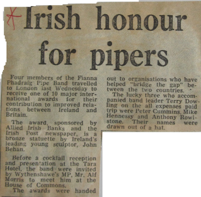 | Irish honour for pipers |
