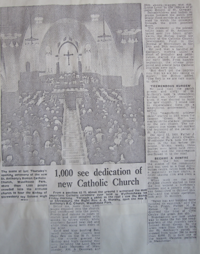 | Bishop of Shrewsbury says solemn high mass at St. Anthony's inauguration |