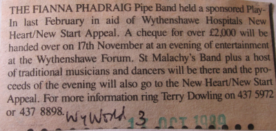 | The Fianna Phadraig Pipe Band hold a sponsored Play-in |