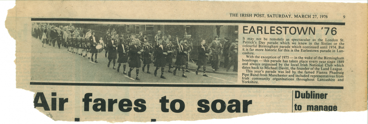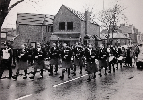 Earlestown... a great favourite amongst the pipers and drummers over the years. The Band played at the St. Patrick's Day walks in Earlestown (St. Patrick's church, Newton-le-Willows) for several decades, initially alongside its sister band, the Terence MacSwiney Pipe Band.