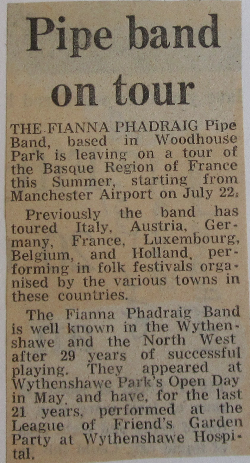 On the bandsmen's return, our local newspaper, The Wythenshawe Express, published an account of the tour: