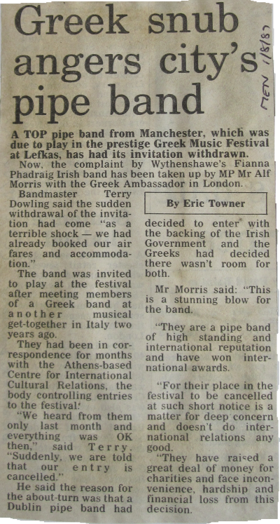 | The band's invitation to the prestigious Music Festival in Lefkas, Greece, is withdrawn in favour of a band from Dublin |