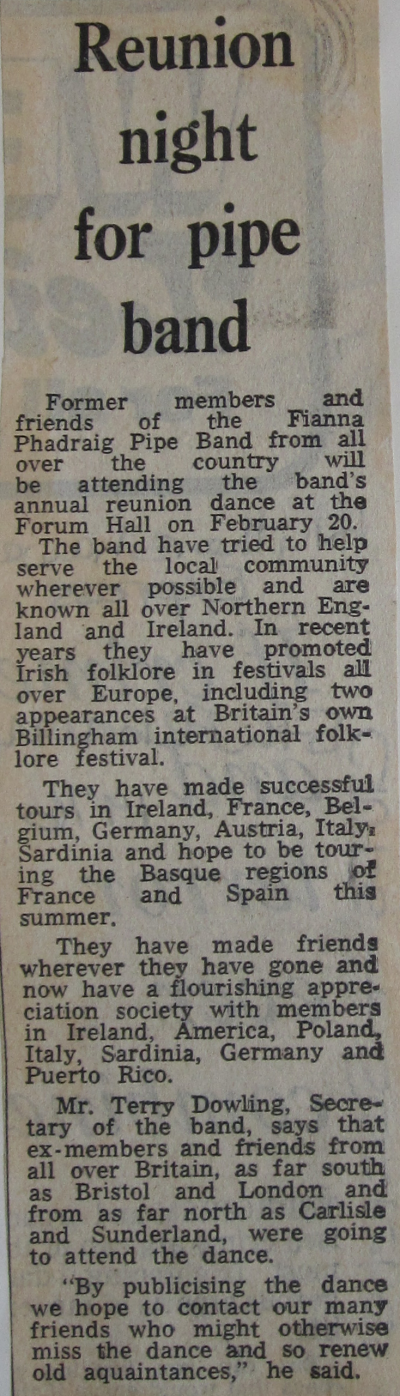 | Former members and friends of the Fianna Phadraig Pipe Band from all over the country attend the band's annual reunion dance in February '76 |