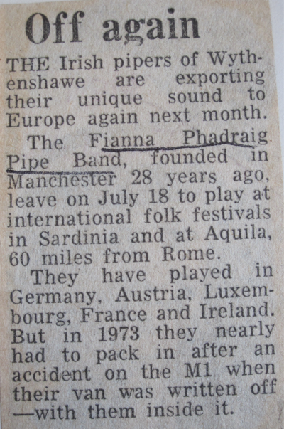 | Irish pipers of Wythenshawe export their sound to Italy... |