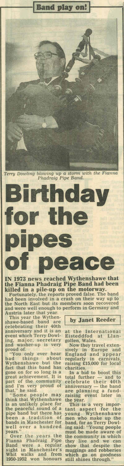 | Terry Dowling blowing up a storm with the Fianna Phadraig Pipe Band |